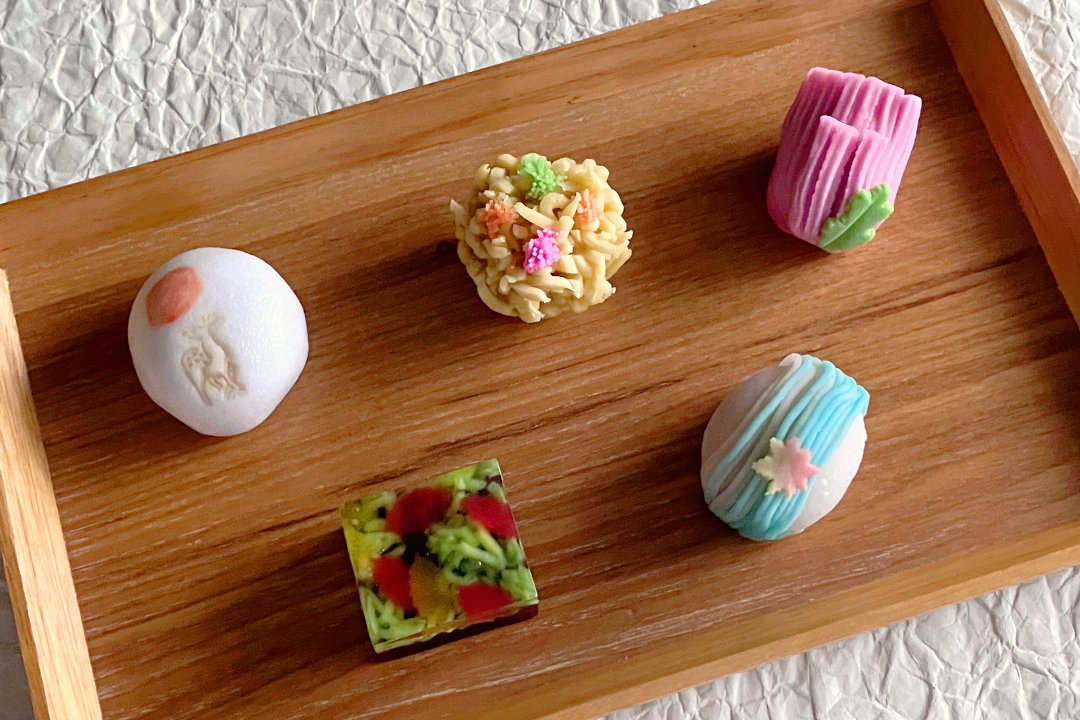 ①和菓子や御菓子所高木について学びます。 ②自分たちでテーマに沿った和菓子(煉切製)のデザ…