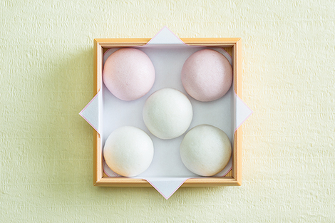 薯蕷芋を使った紅白薯蕷まんは、気品高く、御慶びの席をひときわ格調高く彩るものでございます。
